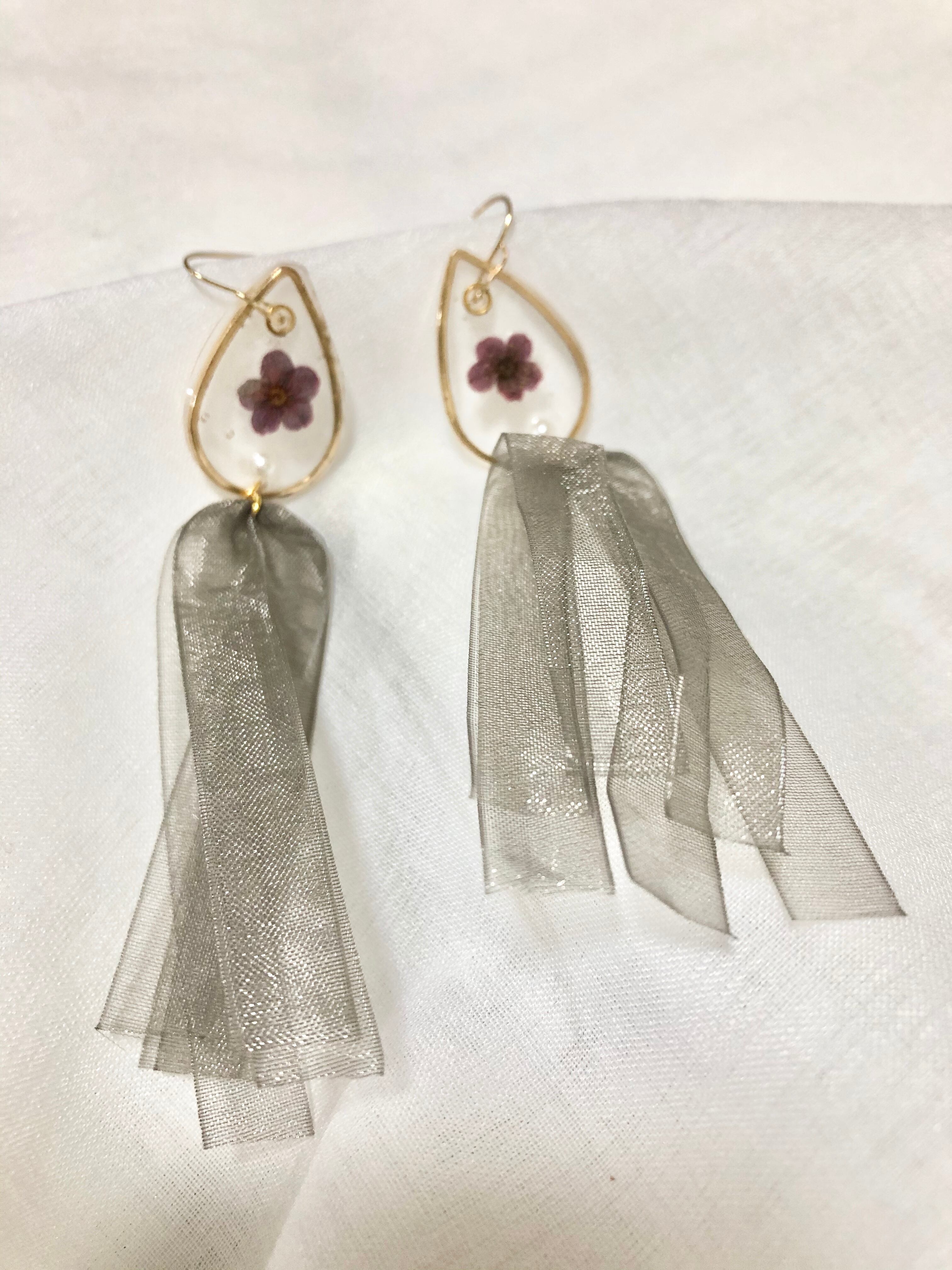 ドロップ型のレジンの中に紫色のお花が咲いています⋆*